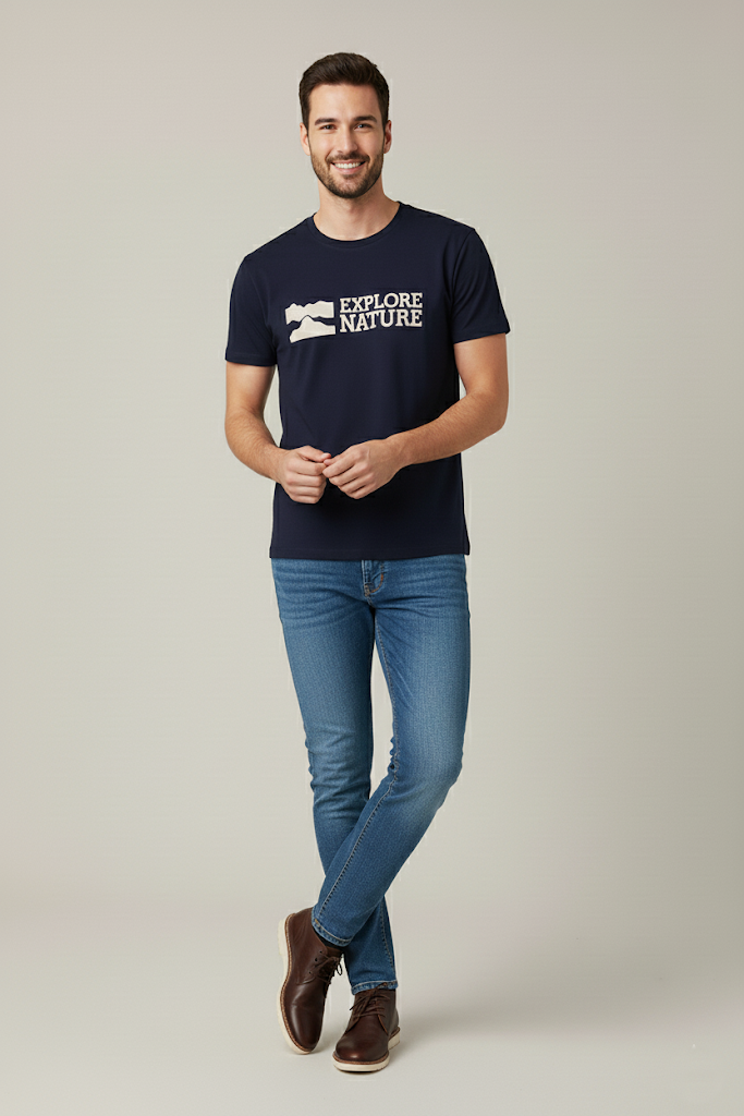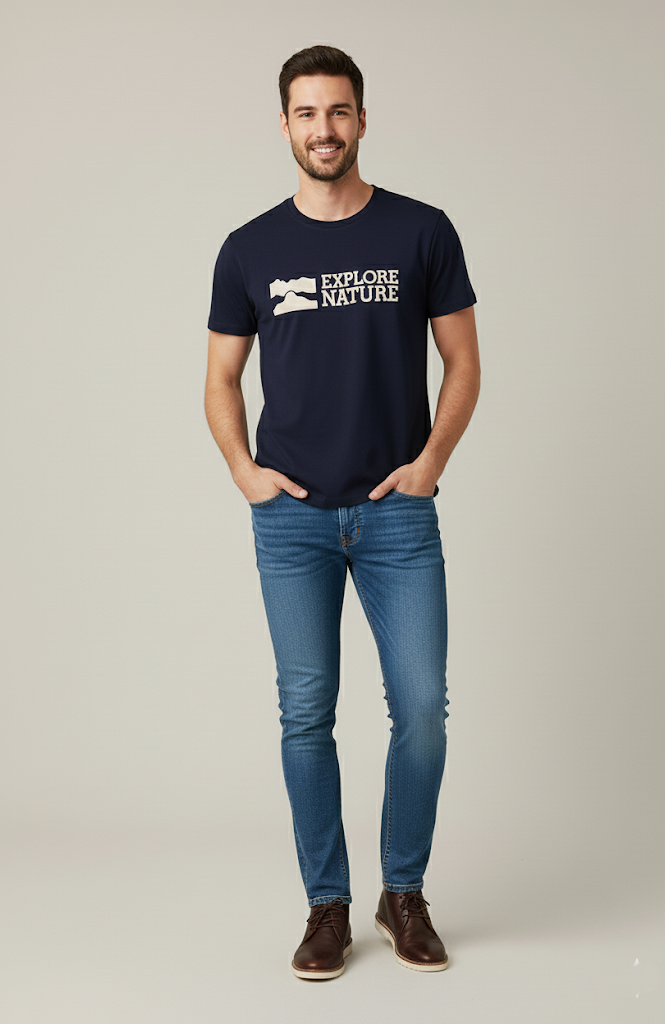 انطلق في مغامرتك مع تيشيرت “Explore Nature” باللون الكحلي – المزيج المثالي بين الراحة والأناقة للاستخدام اليومي. مصنوع من قطن ناعم وقابل للتنفس ليمنحك إحساسًا بالانتعاش سواء كنت تستكشف الطبيعة أو تسترخي في المدينة.